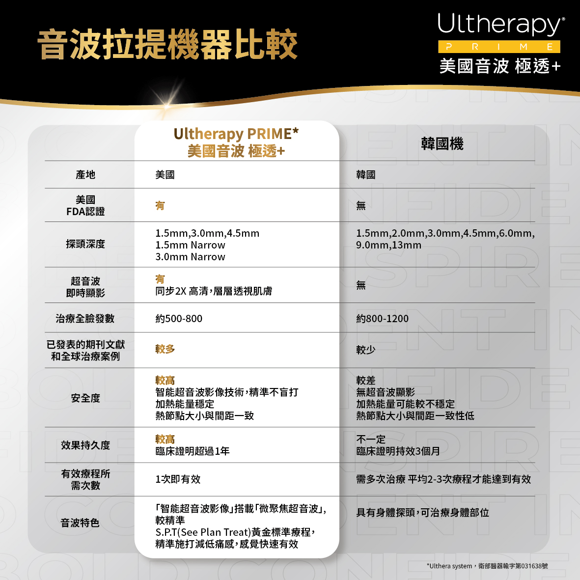 Ultherapy PRIME 美國音波 極透+與一般音波拉提比較