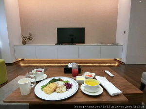 沒想到才短短的兩小時,當天的檢查就完成~然後我跟阿爸就被邀請到休息室吃健檢餐~是說這個休息室也太舒適了吧~看阿爸一臉滿意的樣子,不到五分鐘,就有營養師替我們送上健康的歐法健檢餐。