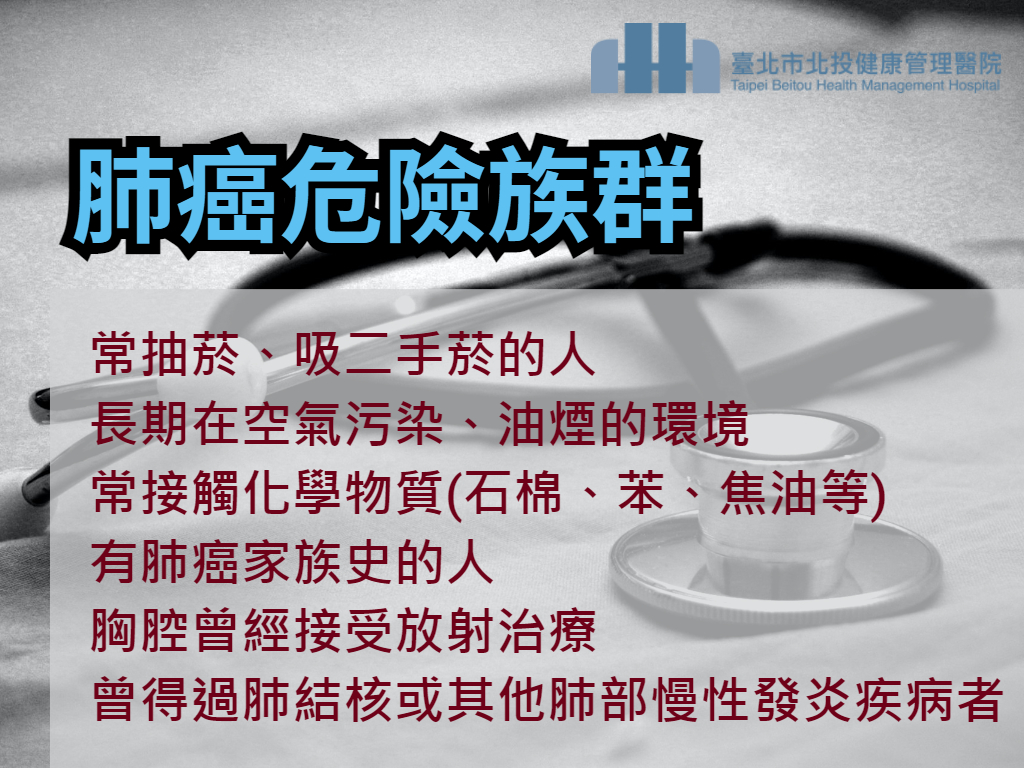 11月是「肺癌防治月」, 一般民眾對肺癌仍存在各種錯誤觀念, 常常導致民眾意識到自己可能已罹患肺癌再去就醫檢查, 已經是發展成晚期,錯過黃金救治機會。